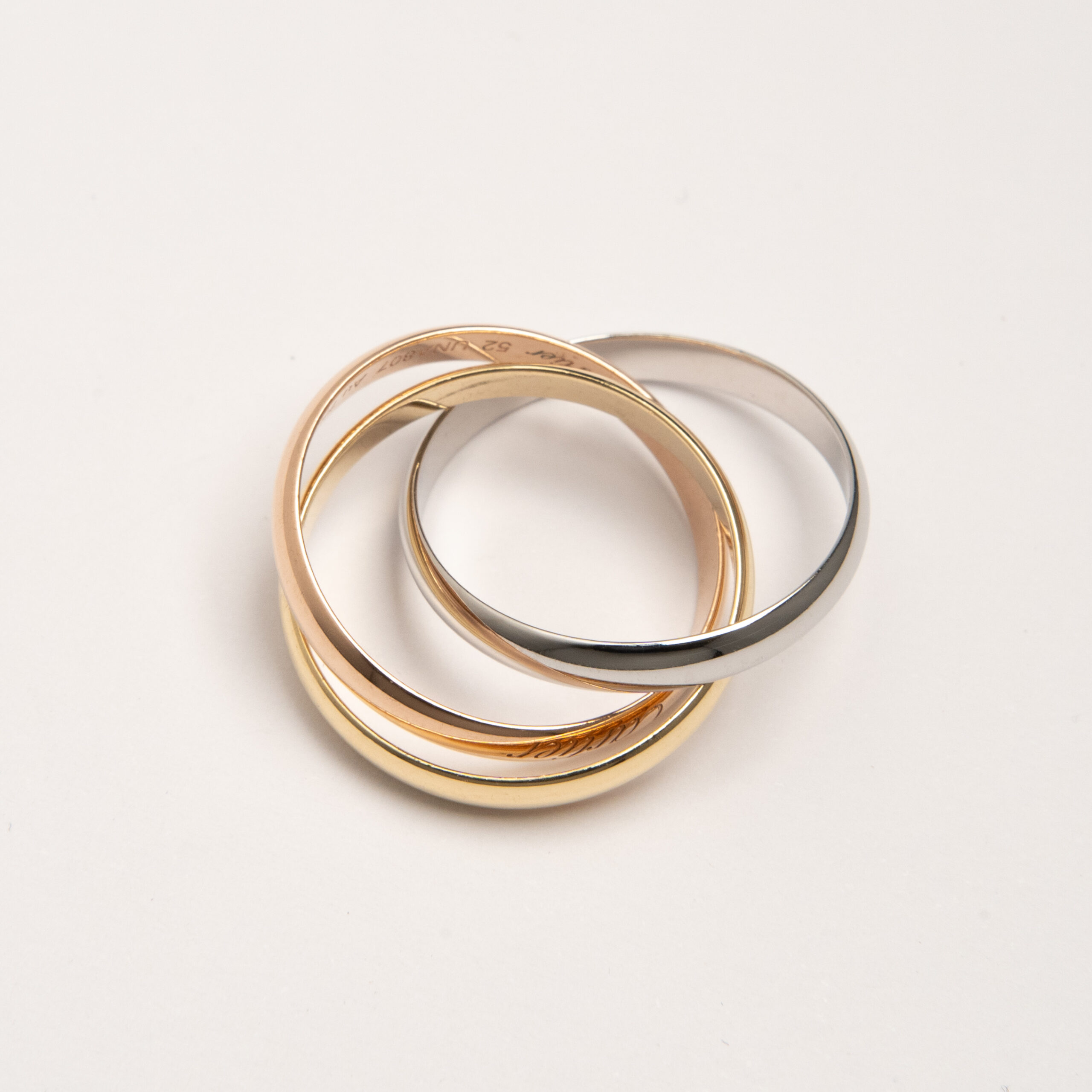 Nel 1924 Louis Cartier immagina un anello composto da tre fasce intrecciate e mobili. Tutto parla di audacia: l’abbinamento cromatico, la fluidità delle fasce, il design essenziale e la sua forza simbolica. Trinity apre le porte alla modernità.