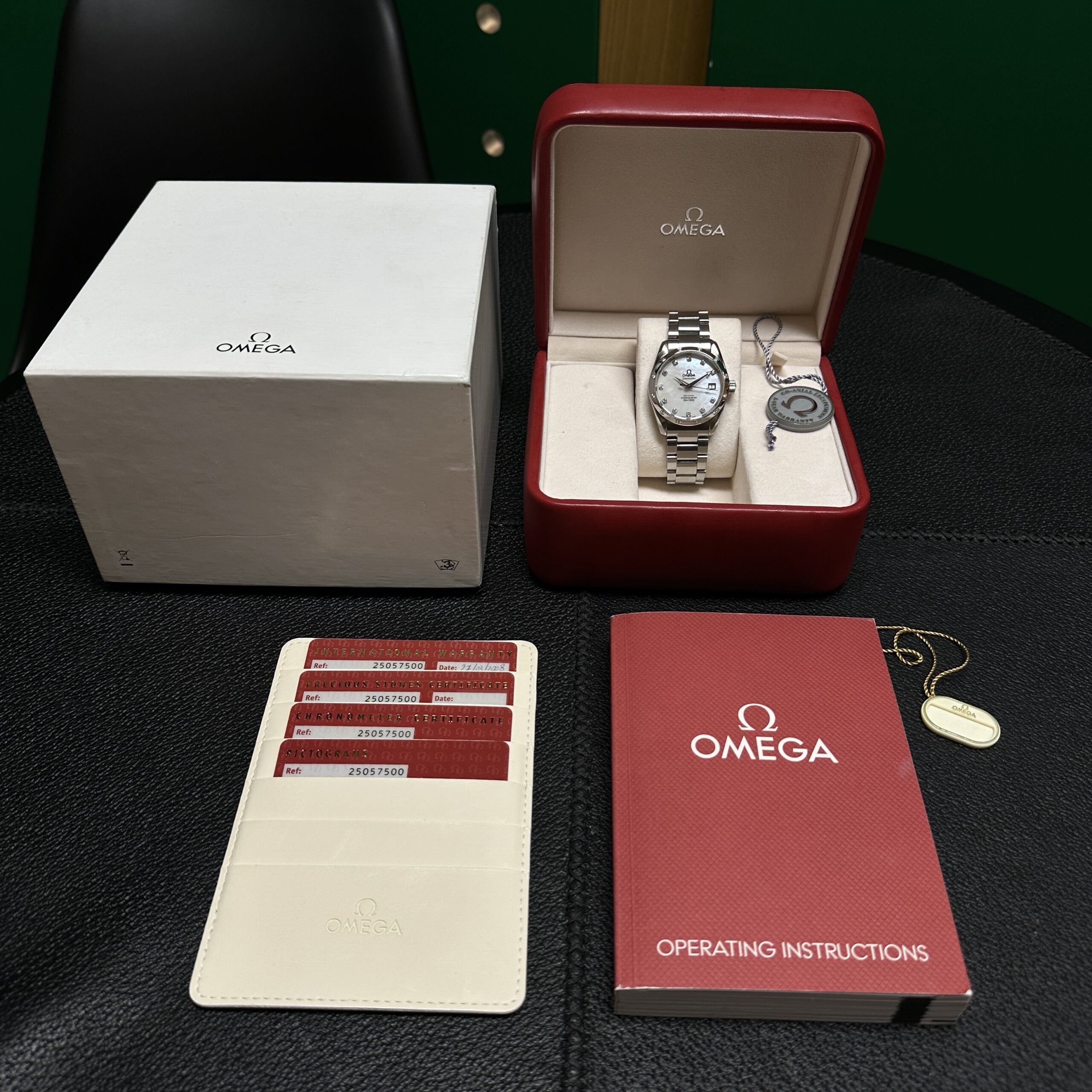 Corredo completo di scatola, schede di garanzia e certificati, tag e portaschede. Unico proprietario anno 2008.