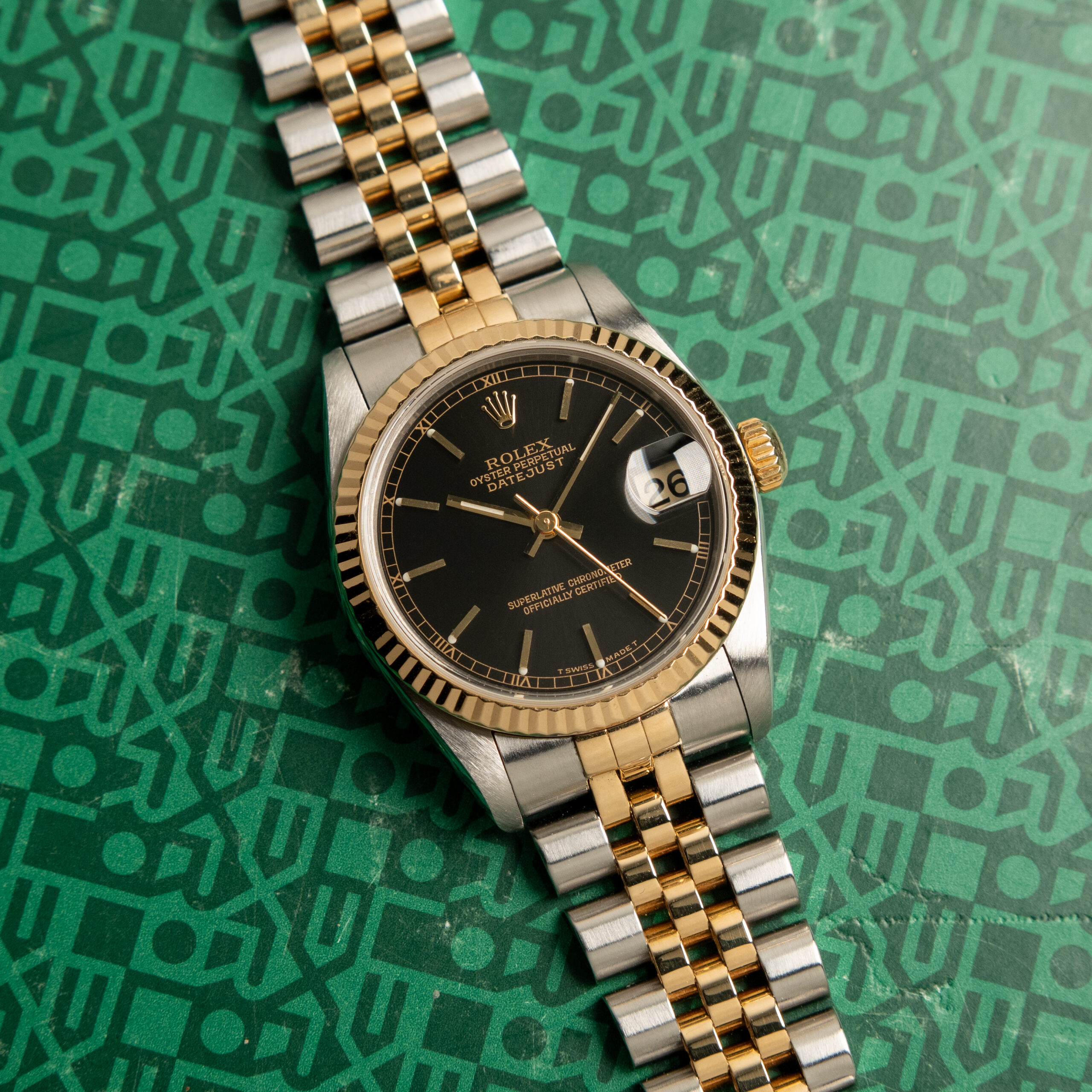 Rolex Datejust 31 referenza 78273 in condizioni eccellenti. Quadrante nero perfetto con trizio impeccabile su sfere e indici, bracciale Jubilee in acciaio e oro estremamente serrato. Calibro automatico Rolex 2235, derivato dal celebre Cal. 3135, recentemente sottoposto a revisione meccanica completa. Solo orologio, unico proprietario.